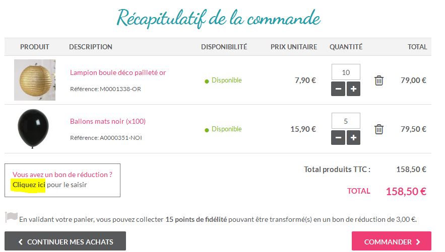 NB : les codes promos ne sont pas cumulables avec vos points fidélités lors de vos achats.