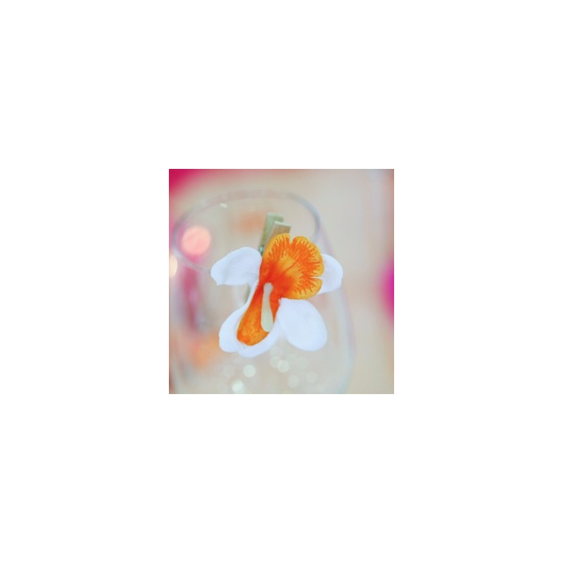 Orchidées sur pince (x6) blanc/ orange
