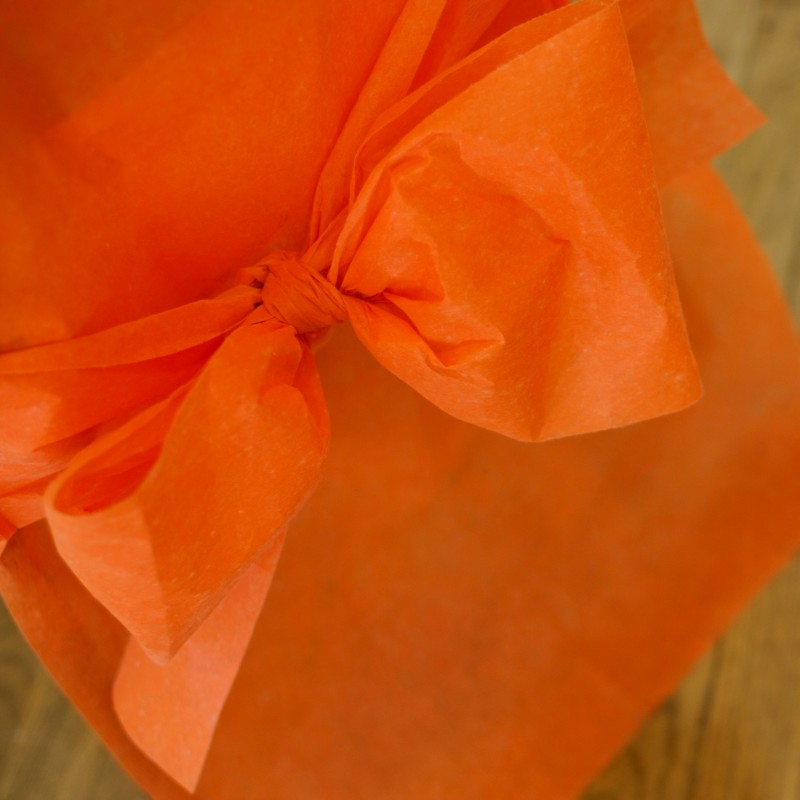 Nouveauté : Ensemble de 10 housses de chaises à nouer confectionnées en non tissé orange, parfaitement coordonnées aux chemins de table,sets de table ronds et bandes en non tissé.
