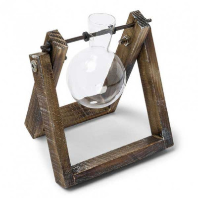 Créez une décoration de table originale grâce à ce porte fiole en bois et verre.